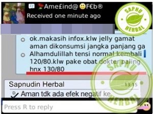 Testimoni diatas membuktikan bahwa QnC Jelly Gamat terbukti dapat menyembuhkan darah tinggi / menormalkan kembali darah yang tinggi. Nah, bagi anda yang sudah menyimak dan berminat, bisa langsung pesan obat ini.